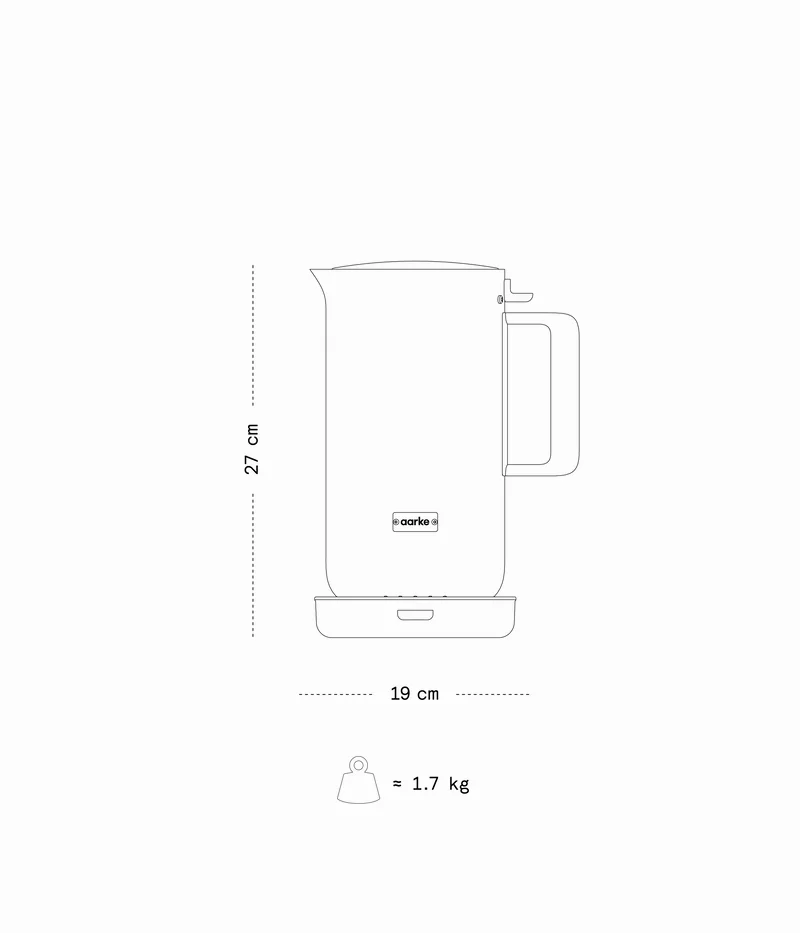 L’Aarke Kettle est une bouilloire température réglable, avec plusieurs paliers de température, allant de 40° à 100°C, et un indicateur de refroidissement LED pratique. Fabriquée en acier inoxydable et dotée d'une poignée résistante à la chaleur, notre bouilloire température réglable offre une combinaison unique d'élégance, de fonctionnalité, de design et d'ingénierie. Si votre eau est très calcaire, utilisez la bouilloire électrique avec notre carafe filtrant Purifier et oubliez les détartrages réguliers de votre bouilloire.
