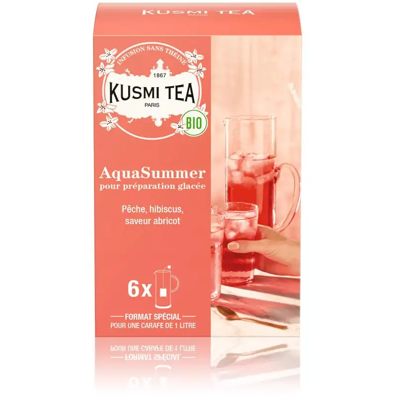 Kusmi Tea AquaSummer Bio - Etui carton 6 grands sachets pour thé glacé - 48 gr