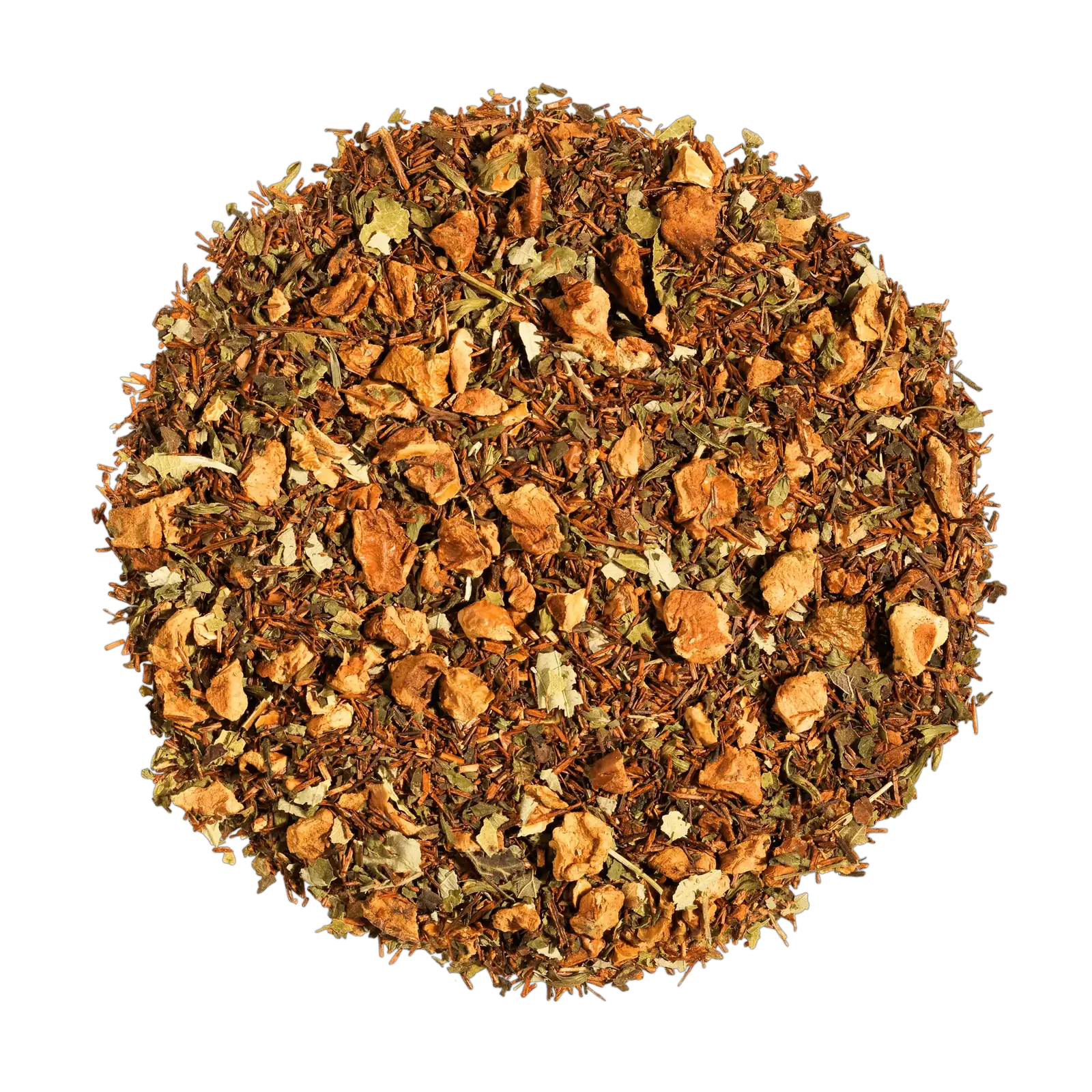 Rooibos* (48%), pomme* (32%), mélisse* (10%), feuilles de mûrier*, arôme naturel de caramel (3%), arôme naturel d'orange* (2%), arôme naturel de vanille.