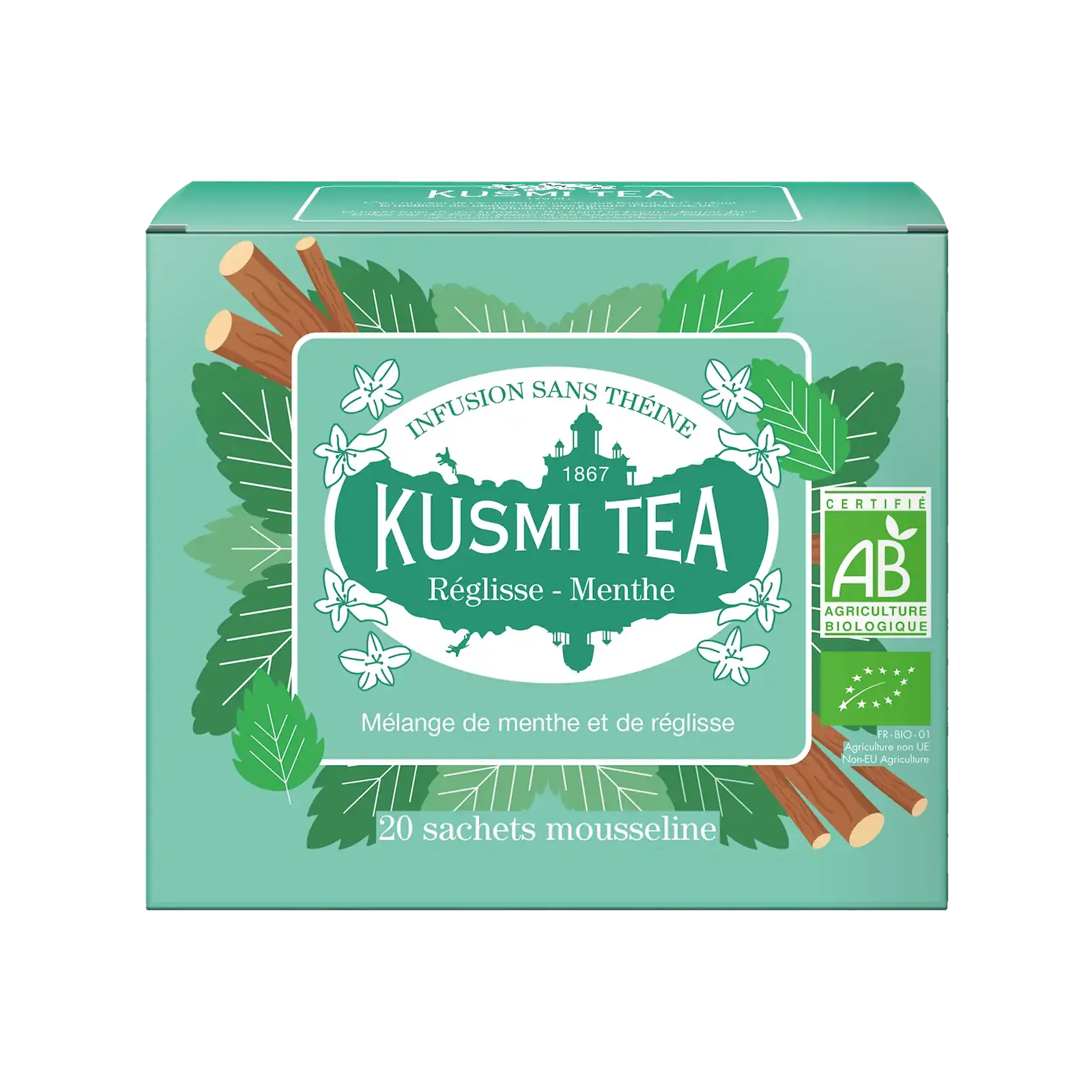 Kusmi Tea Réglisse-menthe bio - Etui 20 sachets mousseline - 24gr