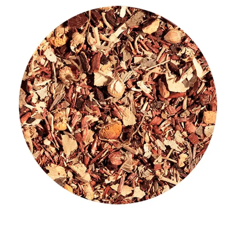 Honeybush* (31%), rooibos* (20%), cannelle* (15%), tilleul*, réglisse* (9%), camomille*, verveine*, …