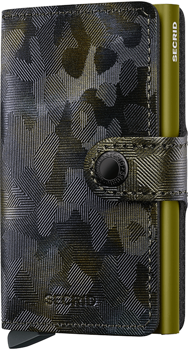 "C’est notre porte-carte le plus emblématique et le plus polyvalent. Aussi compact soit-il, le Miniwallet offre un espace de rangement étonnamment grand. Disponible dans une large palette de styles et de couleurs, il trouve sa place dans toutes les poches. Le mécanisme breveté vous permet d’éjecter vos cartes d’un geste simple, et de les utiliser aussitôt. L’aluminium évite que vos cartes se plient ou se cassent et empêche tout détournement de données. Remarquable relief de camouflage multicolore, fabriqué à partir de cuir de vachette européen de haute qualité. Dans ce porte-carte, vous pouvez ranger jusqu'à 6 cartes et, sous le ""Cardprotector"" se trouve une partie en plastique pliable pour y mettre des billets."