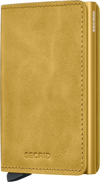 Le Slimwallet est la version moderne des portefeuilles classiques. Il est assez fin pour se glisser parfaitement dans toutes les poches. Grâce à la coupe généreuse de son cuir, il peut abriter au moins six cartes supplémentaires, des billets et des cartes de visite. Le mécanisme breveté vous permet d’éjecter vos cartes d’un geste simple, et de les utiliser aussitôt. L’aluminium évite que vos cartes se plient ou se cassent et empêche tout détournement de données. Notre cuir Vintage présente une surface soigneusement abrasée et une finition cirée qui lui prodiguent un aspect délavé.