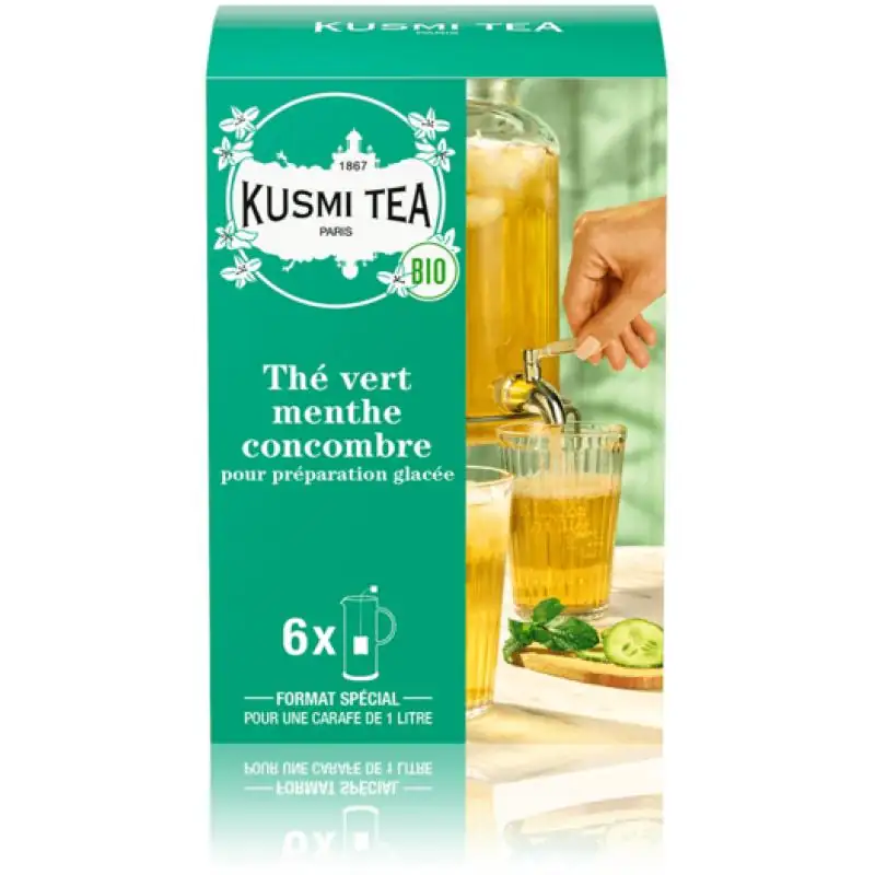 Kusmi Tea Thé vert menthe-concombre bio - Etui 6 sachets pour thé glacé - 48g