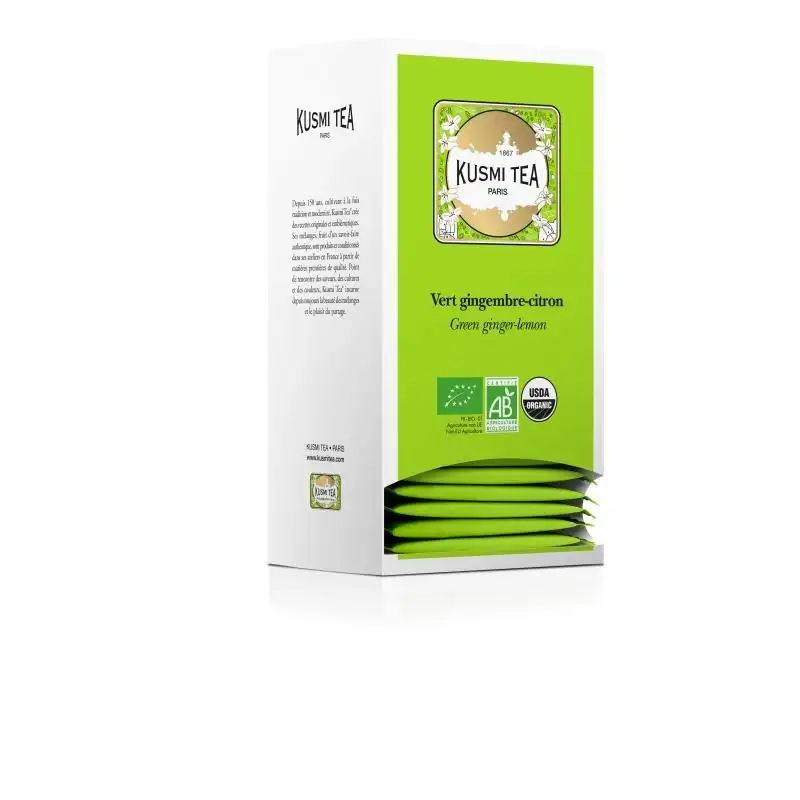Kusmi Tea Vert Gingembre-Citron Bio - Etui carton 25 sachets Kusmipro - 50gr