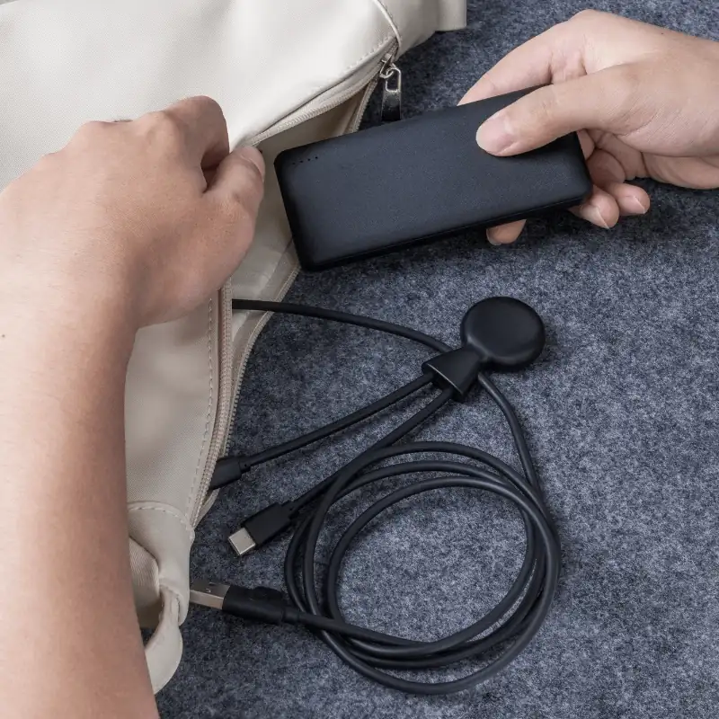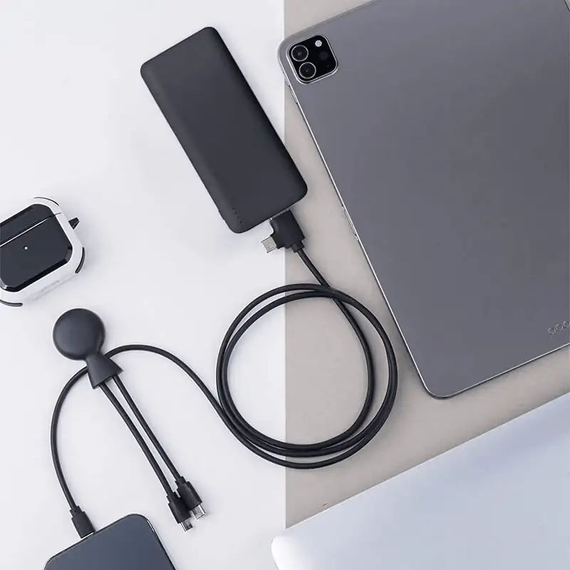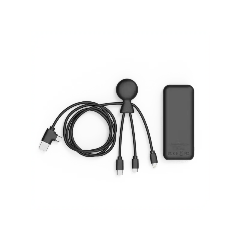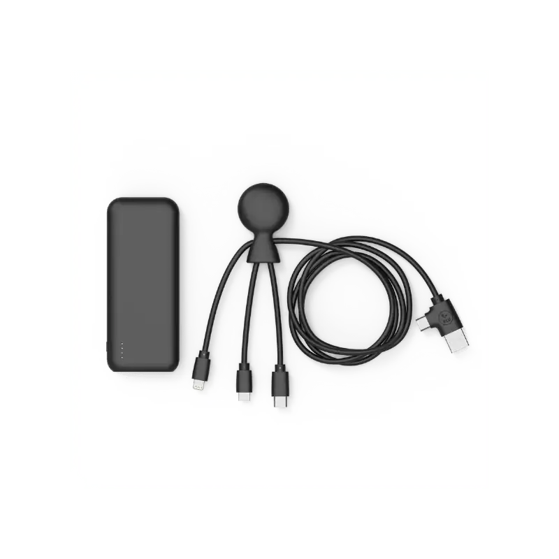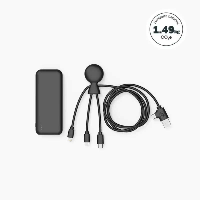 Votre tout en un pour un voyage toujours plus connecté ! Le pack de charge Xoopar Hepta : une power bank de 7000mAh, de quoi recharger 3X votre smartphone, combinée à un câble multi,connecteurs de 1M de long pour plus de liberté. Pour les specs : Batterie : Puissance : 7000mAh Recharge jusqu'à 3 fois un smartphone Câble : Multi,câbles : un mètre de long Entrée : USB,C et USB Sortie : lightning, USB,C & Micro,USB Produit : Compatible avec tout type d'appareil (smartphone, uteur sans fil, GoPro') Produit garantie 2 ans Le nouveau pack de charge Bio est développé dans une démarche de progrès. On vous explique tout : 25% du volume total du produit est fabriqué à partir de plastique recyclé Packaging en papier certifié FSC issu d'une exploitation forestière, disposant d'une gestion durable Matières : 50% ABS recyclé 48% TPE recyclé Marquage Made in France Encres certifiées NF71.3 Tampo 1 couleur et + (numérique) Possibilité de marquage recto/verso sur les 2 produits