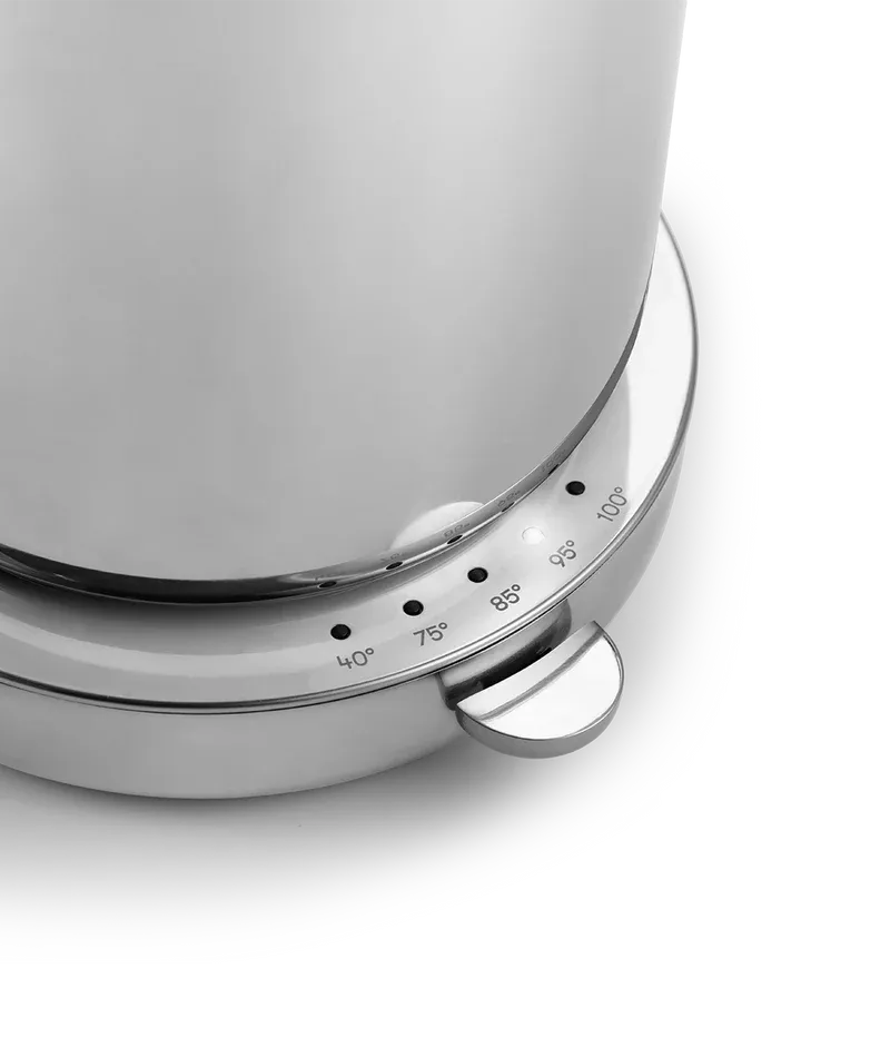 L’Aarke Kettle est une bouilloire température réglable, avec plusieurs paliers de température, allant de 40° à 100°C, et un indicateur de refroidissement LED pratique. Fabriquée en acier inoxydable et dotée d'une poignée résistante à la chaleur, notre bouilloire température réglable offre une combinaison unique d'élégance, de fonctionnalité, de design et d'ingénierie. Si votre eau est très calcaire, utilisez la bouilloire électrique avec notre carafe filtrant Purifier et oubliez les détartrages réguliers de votre bouilloire.